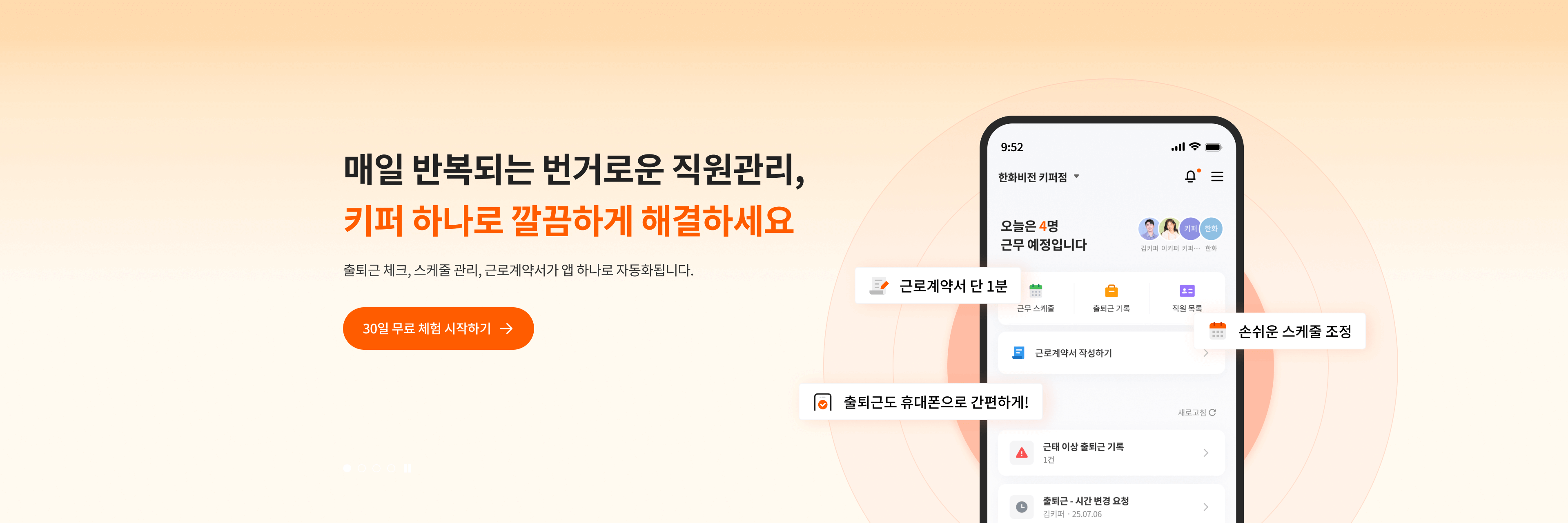 출퇴근 체크부터 계약서, 급여 계산, 직원 관리 기능까지 하나의 APP에서 해결하세요.